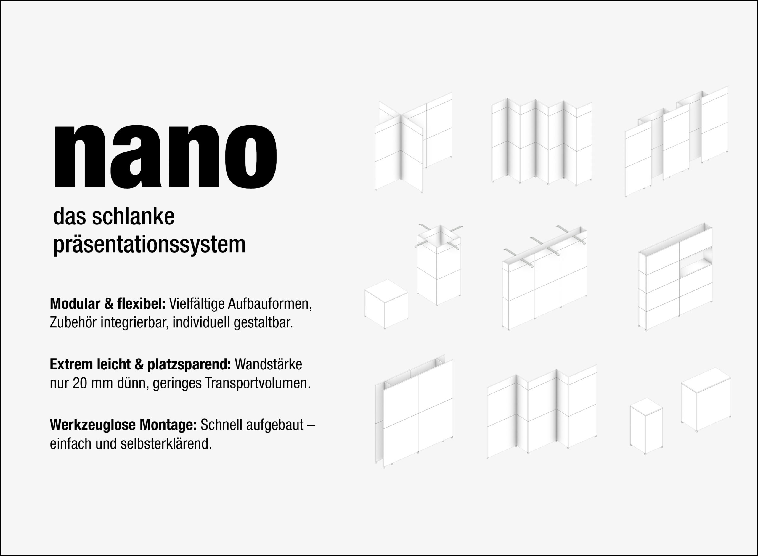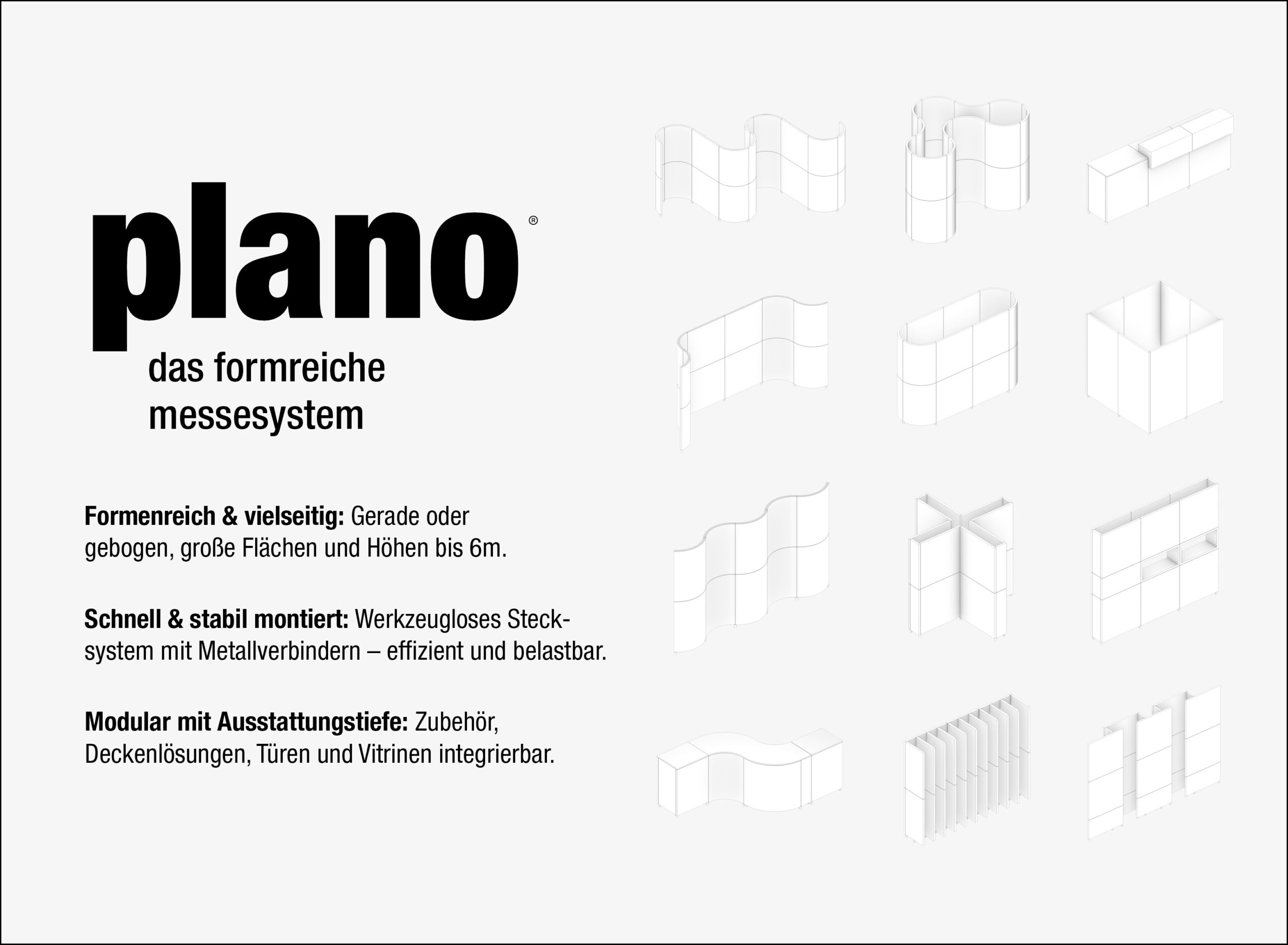 Ergänzt wird dies durch ein vielseitiges Messesystem, das sich flexibel an Ihre Vorstellungen anpasst und Ihren Markenauftritt wirkungsvoll in Szene setzt. Sprechen Sie uns einfach auf Ihr persönliches Anliegen an – wir beraten Sie gerne und entwickeln gemeinsam mit Ihnen die passende Lösung für eine überzeugende Präsentation.